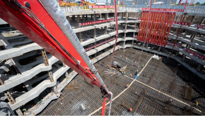 歷經55小時的連續澆筑,8月23日下午,499.8米超高層南京綠地金茂金融中心順利完成了33800立方的超大體積大底板混凝土澆筑施工,這也標志著這座國內規模最大、最復雜的單體地下空間項目建設正在全速前進。該項目由上海建工五建集團承建。