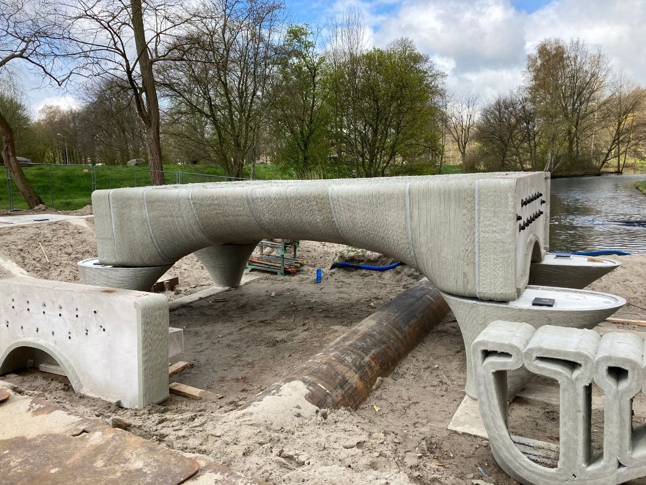 該橋在Saint Gobain Weber Beamix的混凝土打印工廠逐層打印而成,由BAM施工組完成。它不僅是世界上最長的,也是最大的混凝土橋,建筑師擁有該橋完全的設計自由。米切爾·范德克利(Michiel van der Kley)能夠自由地進行設計,不受材料或傳統工藝(如混凝土模板)的限制。