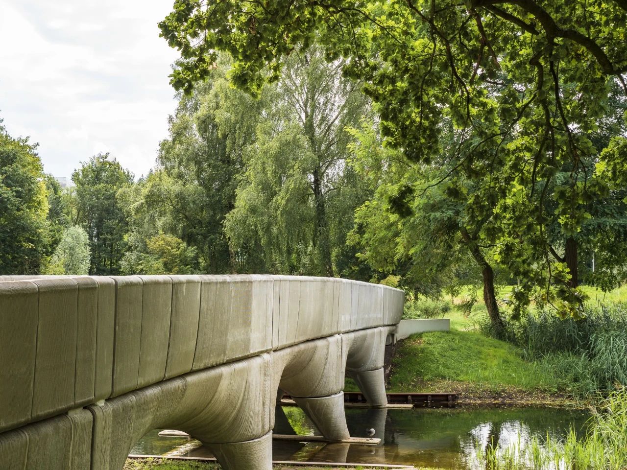 目前荷蘭奈梅根市擁有世界上最長的混凝土3D打印自行車橋,全長29米。歸功于埃因霍溫理工大學的研究和3D混凝土打印技術的進一步發展,使這個項目很獨特,因為該自行車橋被設計為完全不用模型建造,以圓形和波浪形為特征,位于DeGeologenstrook公園。