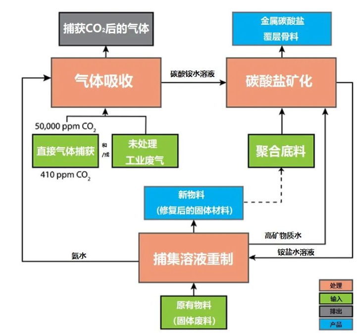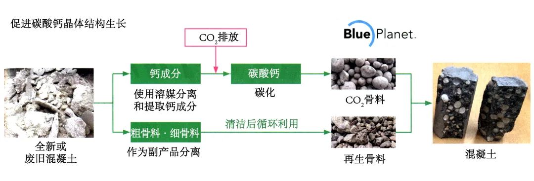 雪佛龍科技風險投資公司(Chevron Technology Ventures)推出首個未來能源基金,已經投資了10多家碳捕獲、新移動和能源存儲方面的公司。由其投資的創業公司Blue Planet Systems,可以利用CO?為混凝土和建筑材料中的石灰石生產替代物。 Blue Planet Systems 使用CO?作為原材料制造碳酸鹽,用于替代天然石灰巖,作為混凝土的重要組成部分。與其他公司不同,該技術是將含有CO?的工業廢氣通入水基捕集溶液中,將其中CO?轉化為碳酸鹽,處理過程中無需凈化步驟,高效且廉價。 捕獲的CO?形成的碳酸溶液可以在不同的基質表面形成碳酸鹽覆蓋層,生產成為合成石灰石骨料,大小從砂礫到礫石不等,尺寸可以自由控制。 為了重制捕集溶液,可以在其中加入巖石廢料和/或工業廢料,這些廢料呈現堿性,可以還原捕集溶液與鈣、鎂和鐵等金屬離子。用過的捕集溶液與這些物料反應后可對其進行重整,這些金屬離子被釋放出來,并與碳酸鹽溶液結合,形成覆層的碳酸鹽。 Blue Planet Systems 的碳捕獲工廠利用上述反應過程制成粗骨料和細骨料,其強度與標準骨料相當,是制造碳中和甚至碳吸收混凝土的有效方法。這種骨料表面由合成石灰石CaCO?聚合覆蓋而成,每噸可以捕獲CO?超過440kg。 Blue Planet Systems生產的輕質覆層石灰石骨料已經應用于舊金山國際機場的建設中,用于臨時登機區的混凝土澆筑,未來也將與日本三菱公司合作研發進一步的碳中和方案。