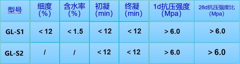 鋼鹿牌GL-S型混凝土速凝劑有GL-S1型和GL-S2型兩種。GL-S1型為粉劑,GL-S2型為液體。
